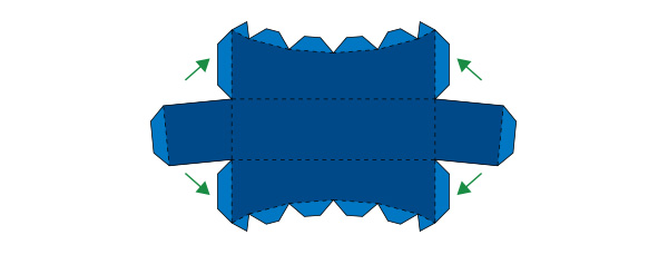 展開図の「20」を切り取って組立指定図に従って折り、下図のように接着します。