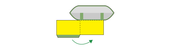 展開図の「71」を切り取って折り線指示に従って折り、黄色で示した部分の裏面同士を接着します。