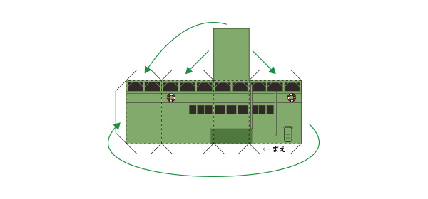 展開図の「78」「79」を切り取って折り線指示に従って折り、上でつくったパーツにはめ込むように接着します。