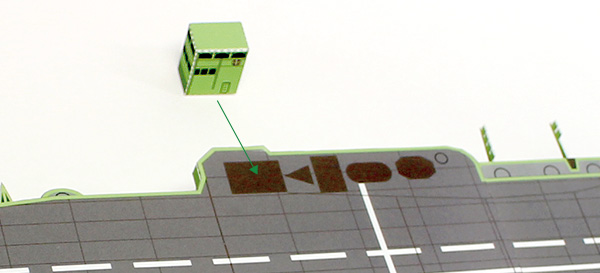 展開図の「69」を切り取って、7と同様に組み立てて、上でつくったパーツに接着します。