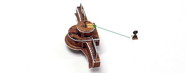 上でつくったパーツ(ステップ14で作成)と、13でつくったパーツ(ステップ13で完成した構造物)を、下図のように接着します。