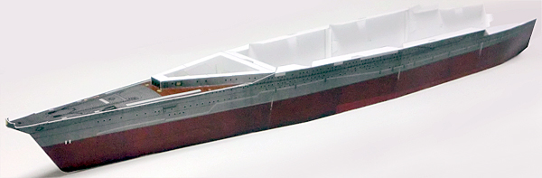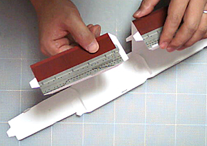 「船体をつくる-3」でつくったパーツ「11」を、上でつくったパーツと接着します。まず「11」の船首側のソケットがあるのりしろを接着し、乾燥してから左右ののりしろをひとつずつ丁寧に接着してください。