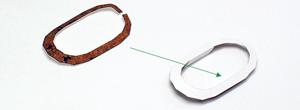 展開図の「92」を切り取って、上でつくったパーツと、形を合わせて接着します。
