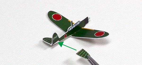 上でつくったパーツの断面に接着剤を塗り、機体の左側に接着します。